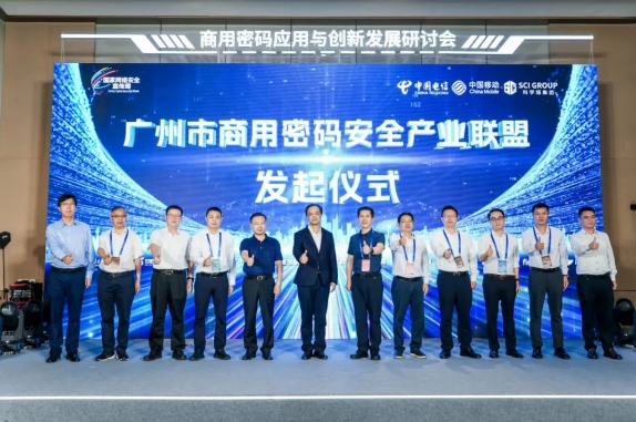 中国电信牵头联合一竞技官网信息在内的多家单位举行了“广州市商用密码安全产业联盟”发起仪式,联盟单位将共同有助于产业开展,实现技术创新和突破。
